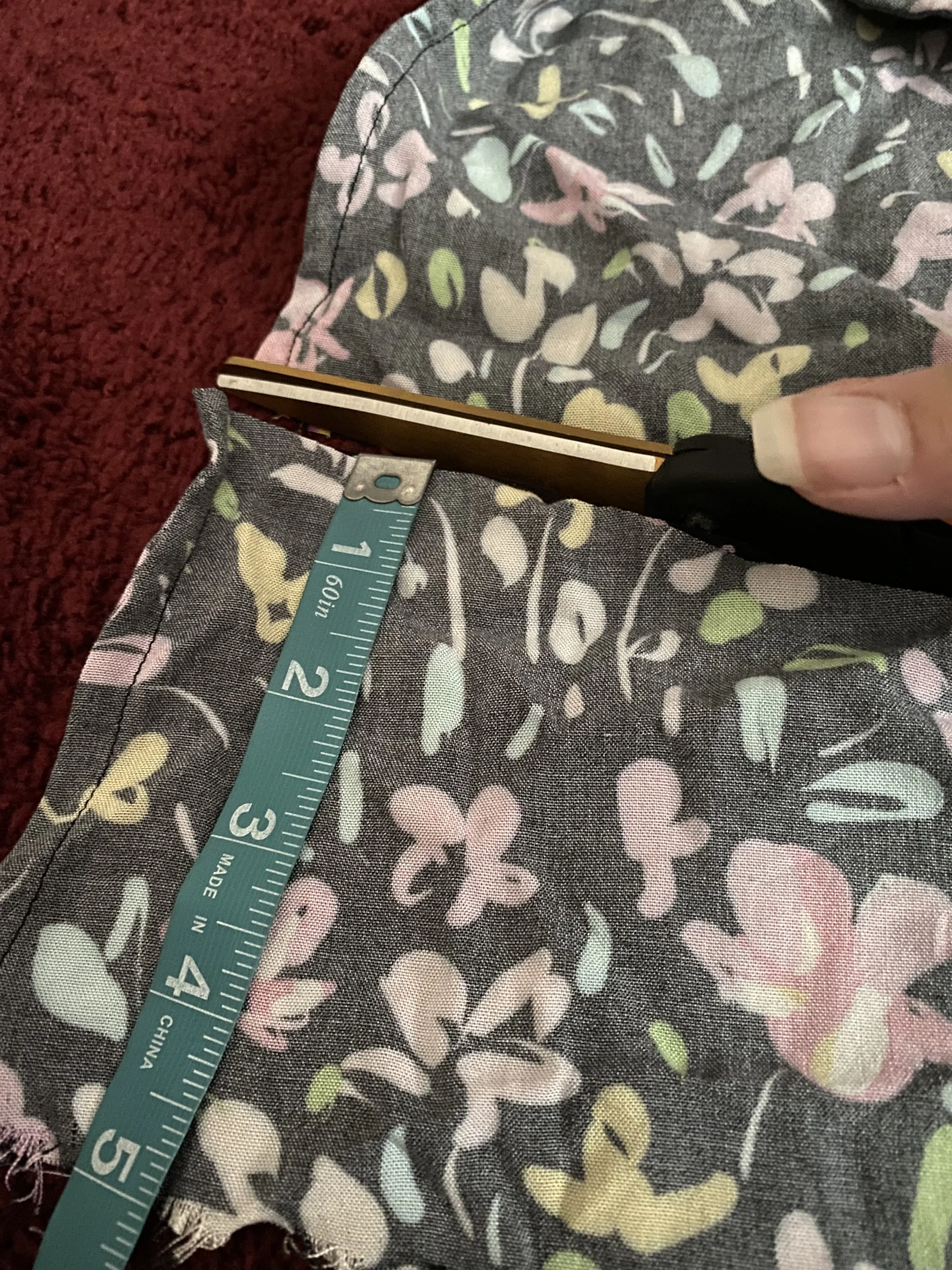 I removed a total of 5” from the length of the skirt and shortened it a bit more from the hemming instructions, folding up 1/4” and then again another 1/2”. Once I finished the dress and threw it on, I wasn’t a fan of how large it was around the bust so I went in and simply took it in another total of 3/4” on either side in the middle to remove a total of 1.5” to achieve the more form-fitting silhouette I prefer.